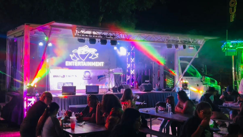 Our Acoustic Stage is the most adaptable and highly sought-after stage available. It has hosted a variety of events, including acoustic performances, full bands, DJ sets, auctions, karaoke, and our favorite—kids' dance parties! Equipped with a complete PA system and mixer, built-in lighting and fog effects, plus a 10 LED wall, the possibilities are endless with this incredible truck stage! Platform measures 20'x8'.